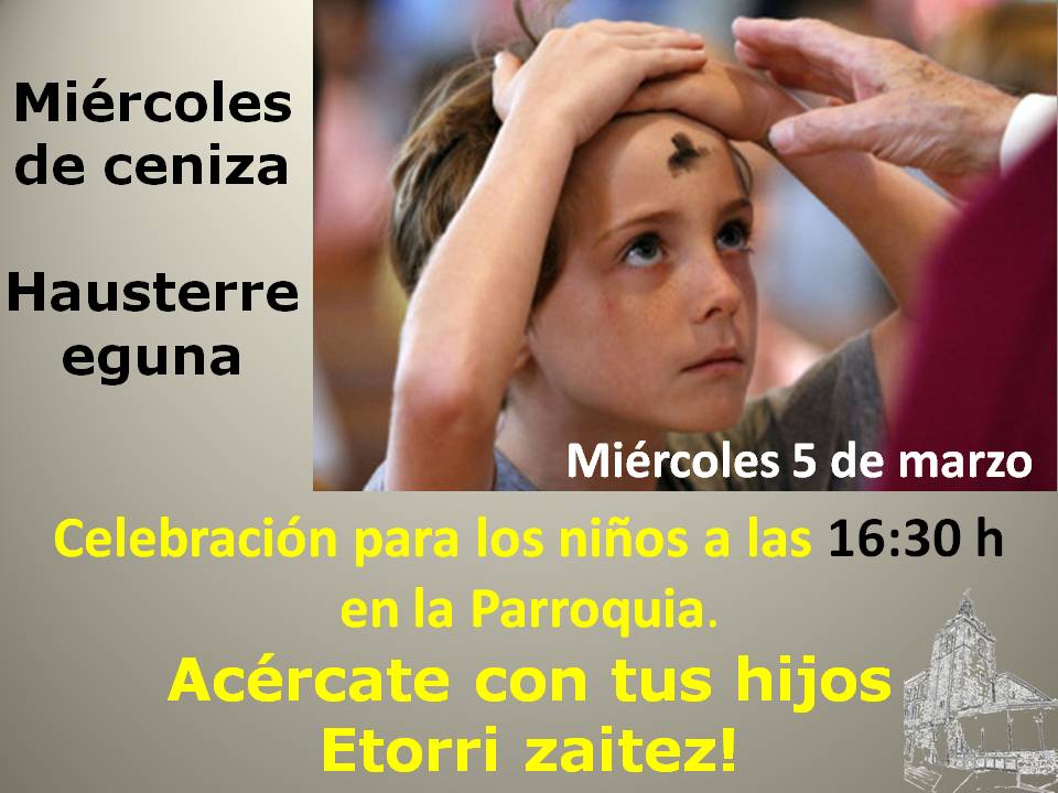MIÉRCOLES DE CENIZA PARA LOS NIÑOS. HAUSTERRE EGUNA HAURRENTZAT