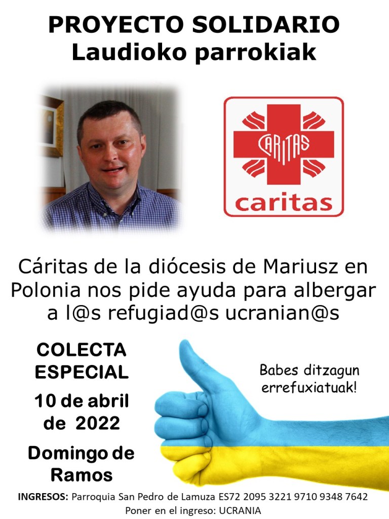 Las parroquias de Laudio/Llodio de Santa Cruz de Gardea, de San Ignacio de Ugarte, de Santa María del Yermo, de Santa Ana de Areta y de San Pedro de Lamuza presentamos la colecta especial y PROYECTO SOLIDARIO 2022